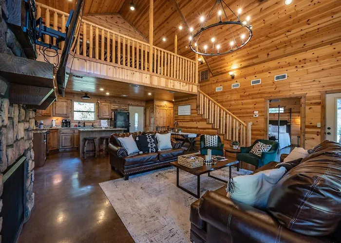 Pine And Pickle - Cozy Cabin, Sleeps 10, Loft, Hot Tub, Firepit Broken Bow is located 10 minutes' drive from the Hochatown Petting Zoo and invites guests to enjoy a patio.